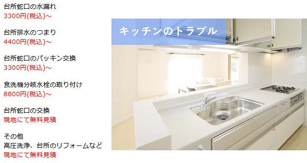兵庫県で対応可能な台所(キッチン)の修理サービスとなります。その他のトラブルはお気軽に受付スタッフまでご相談ください。